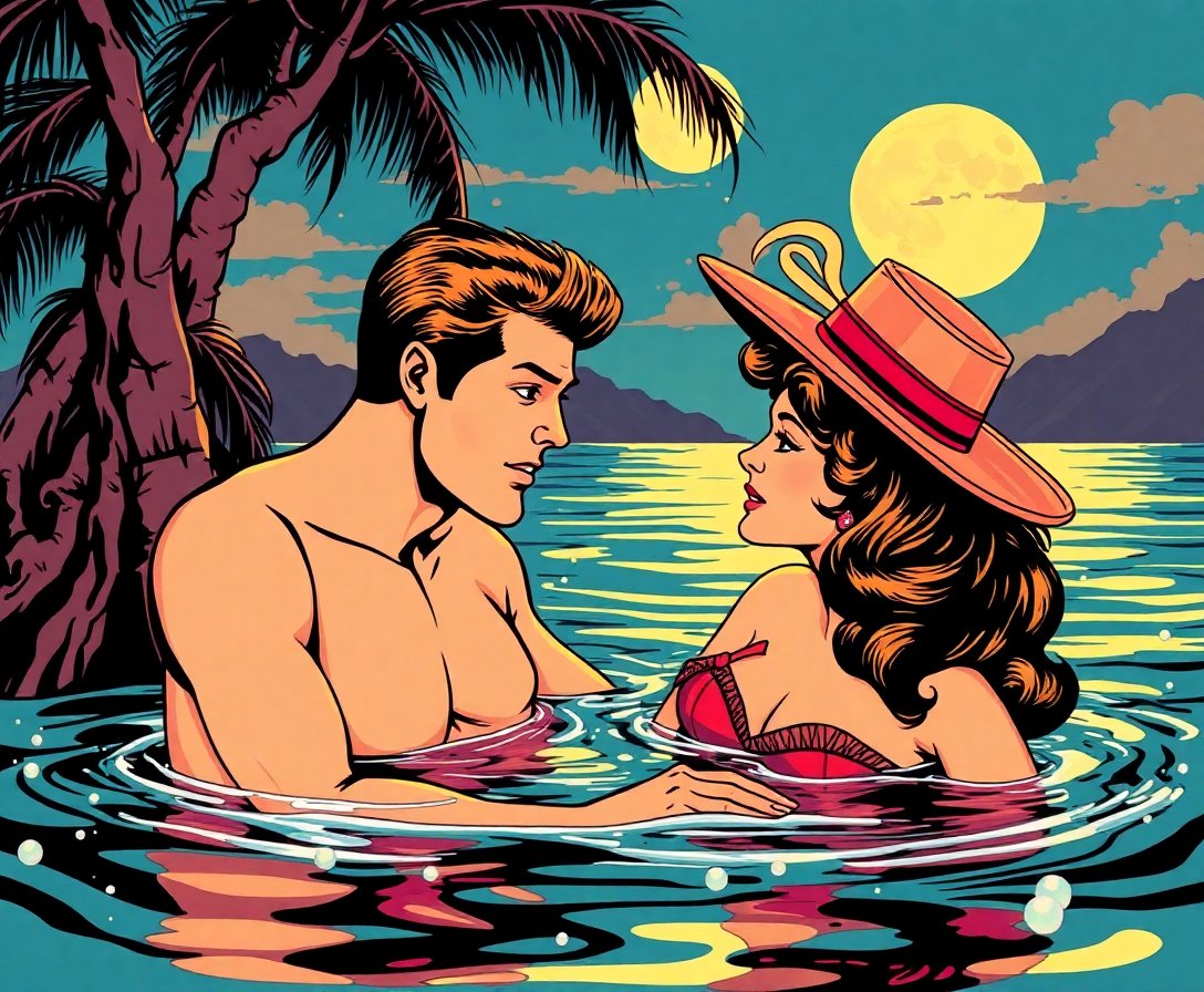 Ultimately, step back and admire your finished creation. The lagoon’s mysterious beauty and romantic atmosphere will captivate viewers. Your completed painting becomes a stunning conversation piece celebrating Golden Era Comics artistry.