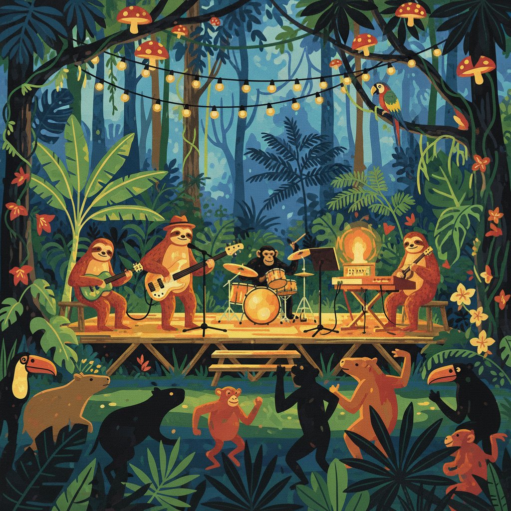 Transform your space with this captivating Vintage Rainforest Groove Concert Paint By Numbers kit. This unique design blends tropical vibes with groovy music culture. Create a stunning masterpiece that celebrates both nature and vintage concert art.