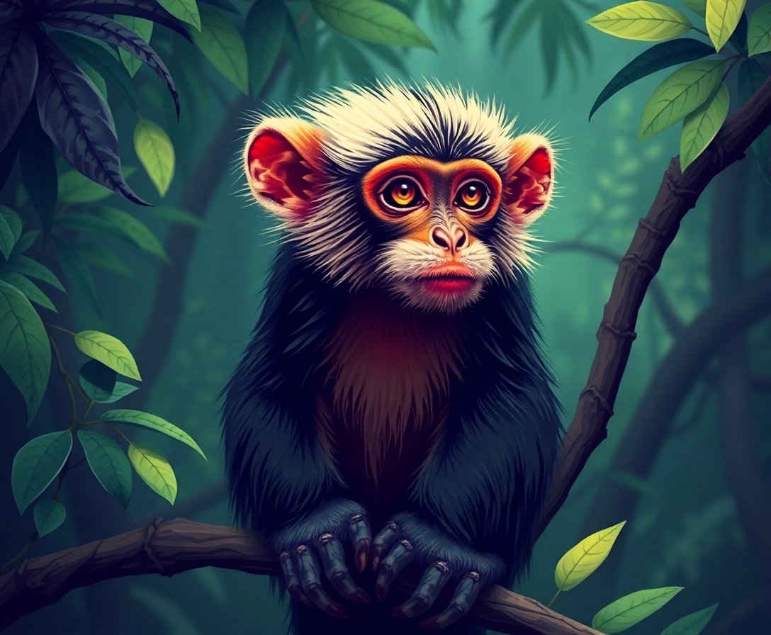 Ultimately, step back and admire your completed vintage botanical masterpiece. The rainforest canopy and spider monkey create stunning visual harmony. Your finished artwork deserves prominent display in your home.