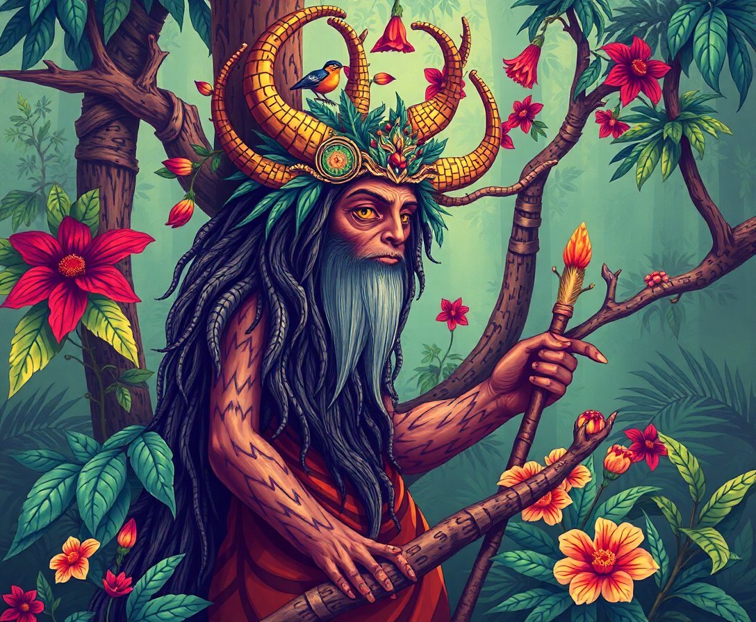 Ultimately, add final details with the small brush for intricate features. Allow your completed spirit painting to dry completely. Your vintage rainforest apparition now emerges in full mystical glory.