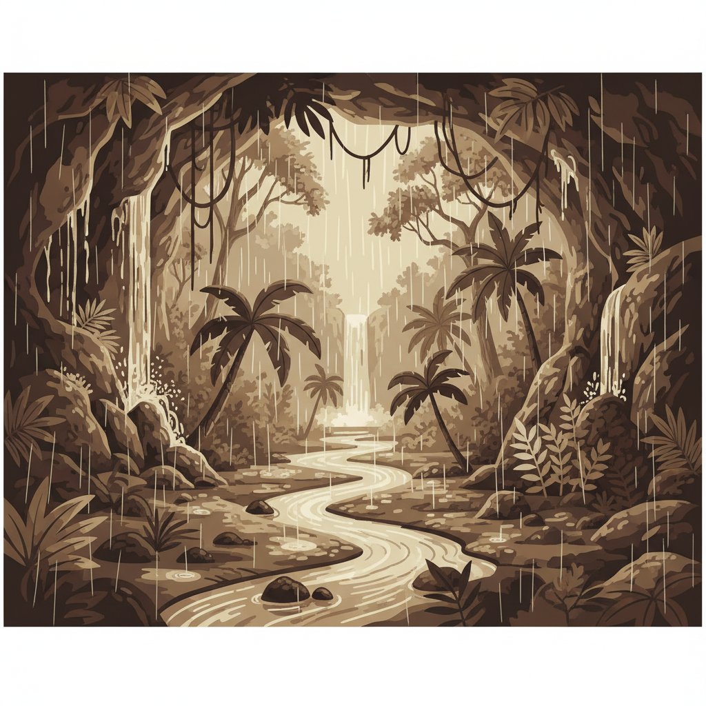Transform your space with this captivating Vintage Raining Jungle Cave Paint By Numbers masterpiece. This stunning sepia-toned artwork captures the mystical beauty of a hidden rainforest grotto during a gentle downpour. Each brushstroke reveals ancient cave formations and cascading water in timeless vintage elegance.
