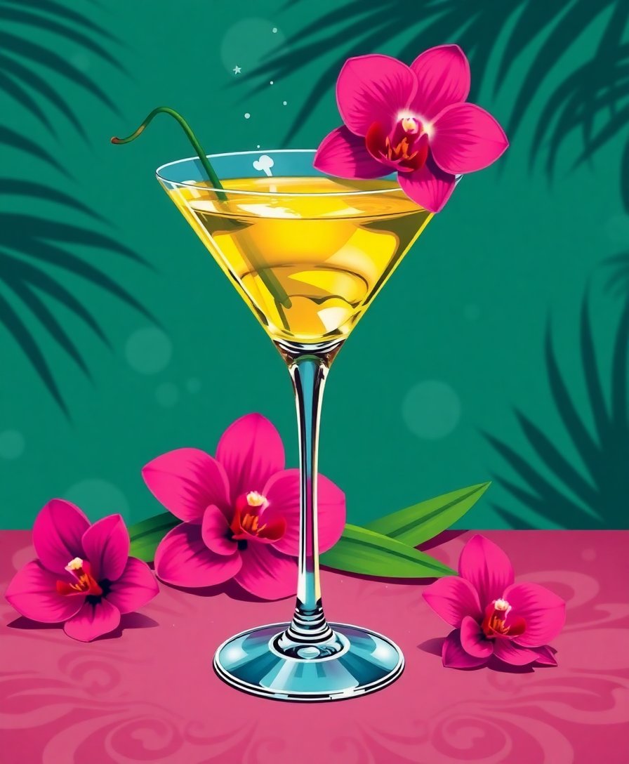 Step into the glamorous world of old Hollywood with this sophisticated Vintage Rattan Orchid Martini Paint By Numbers masterpiece. This elegant design captures the essence of classic cocktail culture and timeless sophistication.