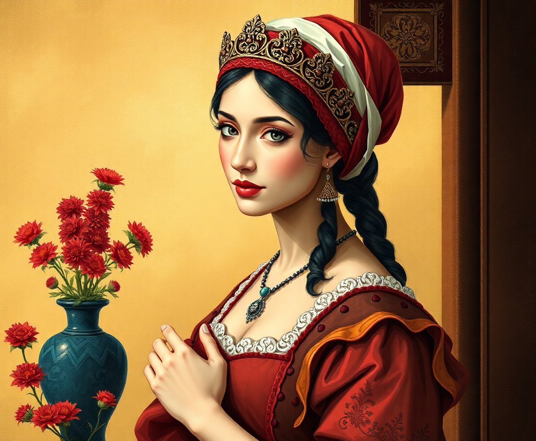 Ultimately, add the final touches to the spice elements and background textures. These finishing details bring your portrait to life with authentic Renaissance charm. The completed masterpiece radiates timeless sophistication and artistic accomplishment.