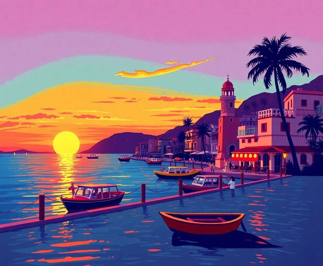 Immerse yourself in the meditative qualities of artistic creation. Meanwhile, this world scenes painting promotes relaxation and stress relief. Furthermore, the warm sunset palette creates a soothing atmosphere during your creative sessions.