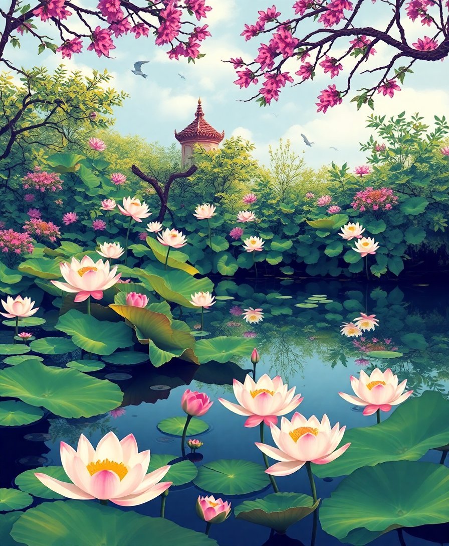 Vintage Serene Water Garden Paint By Numbers