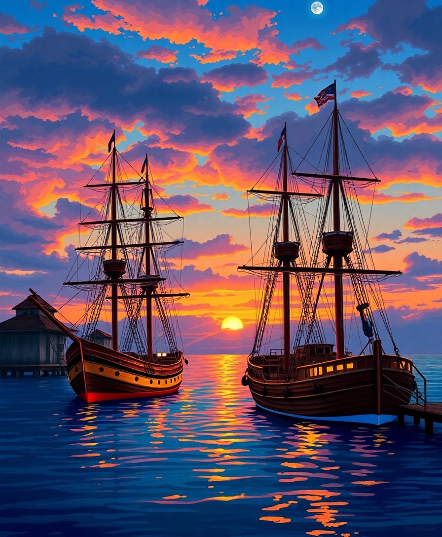 Subsequently, begin with larger areas using the medium brush for efficient coverage. Then, progress to detailed sections with the small brush. Consequently, your vintage ships emerge gradually against the twilight sky.