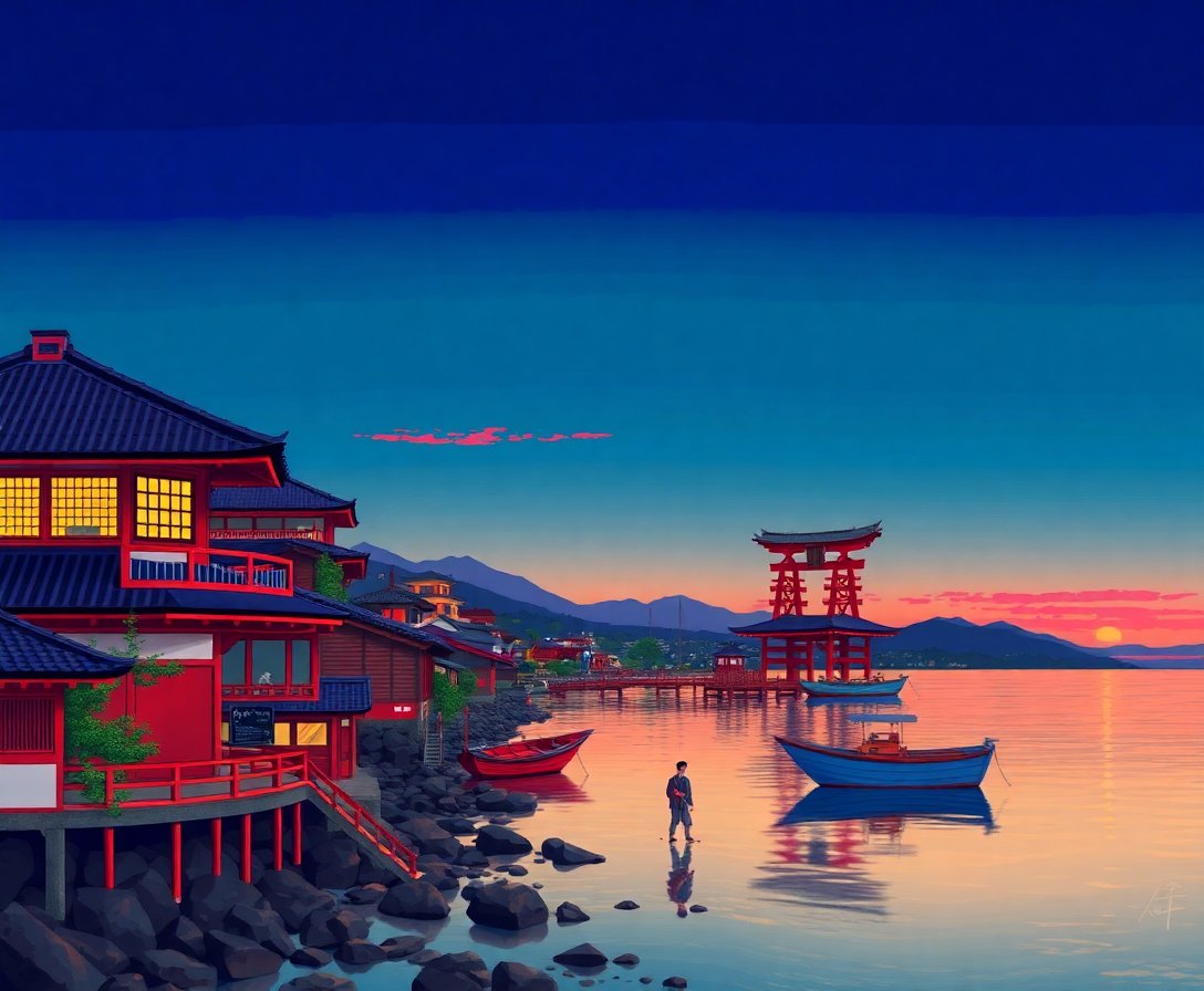 Ultimately, step back and admire your completed vintage Japanese shore scene. Consequently, you’ll have created a beautiful piece that captures twilight’s peaceful essence. Therefore, your finished artwork deserves a place of honor in your home.