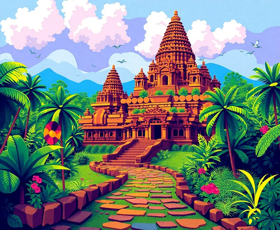 Ultimately, add final details with your small brush to complete the pathway textures. Your finished masterpiece captures the timeless beauty of Sigiriya’s mystical jungle trails.