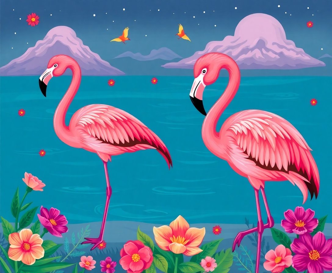 Transform your creative space with this enchanting Vintage Solstice Flamingo Slumber Paint By Numbers masterpiece. This captivating design features graceful flamingos in dreamy pink hues against a mystical nightscape backdrop. Perfect for artists seeking a relaxing yet rewarding painting experience.