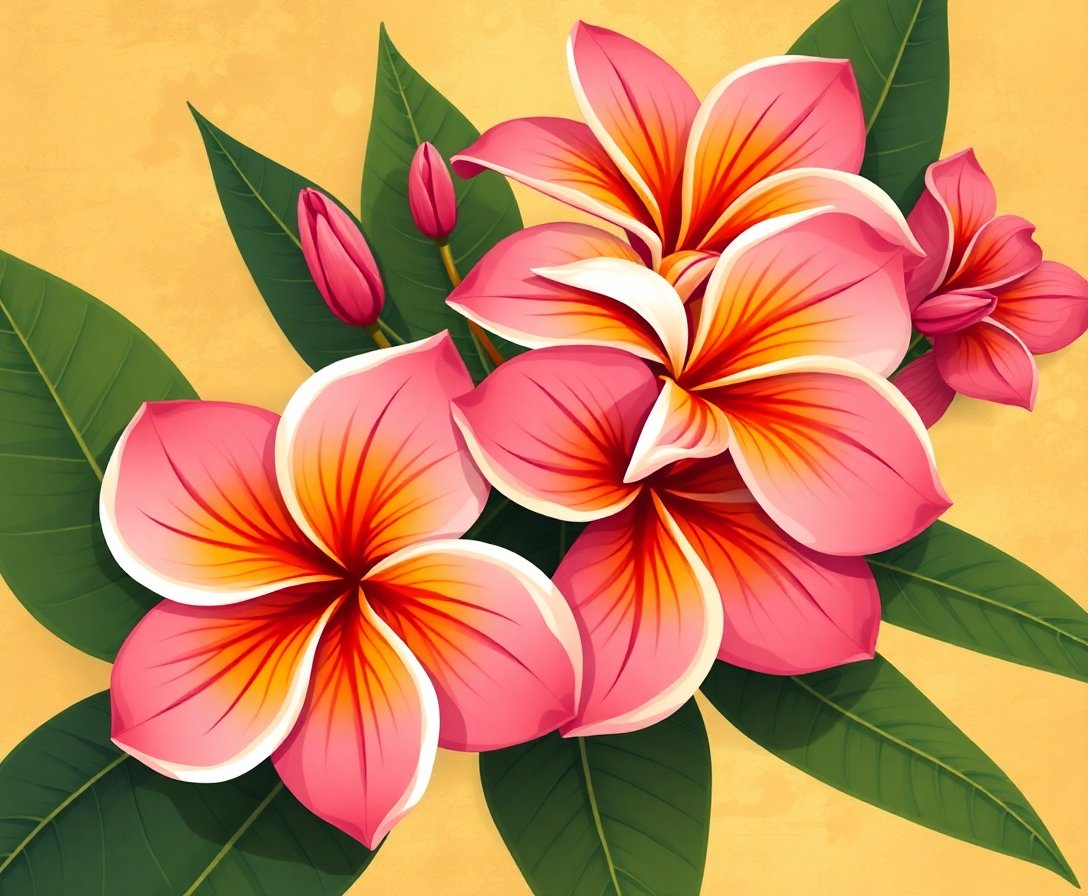 Ultimately, step back to admire your completed vintage plumeria masterpiece. Moreover, the warm sunbaked tones create a stunning focal point. Additionally, your finished artwork radiates botanical elegance and artistic accomplishment.