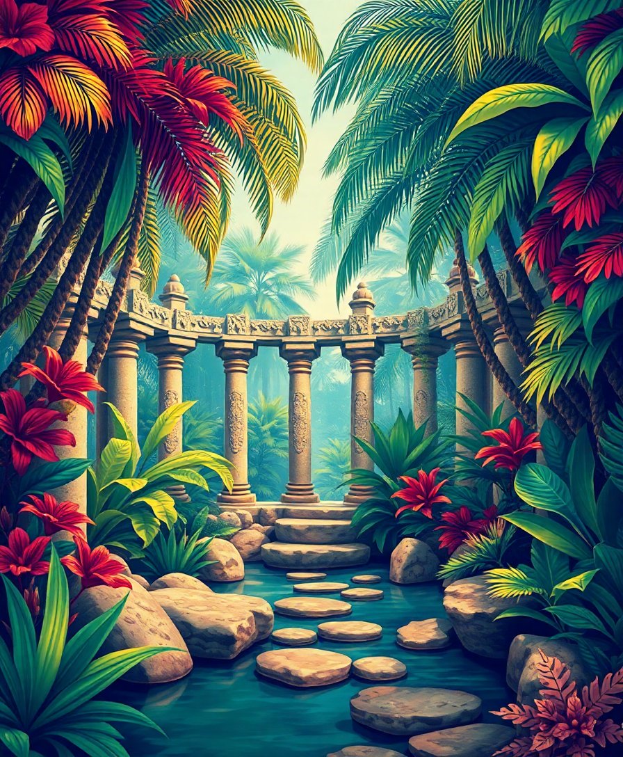 Benefits of This Vintage Sunken Tropical Garden Paint By Numbers