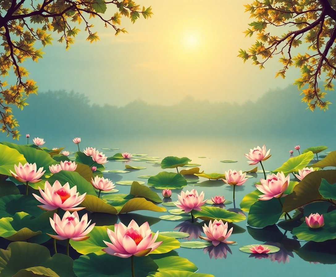 Vintage Sunlit Lotus Waters Paint By Numbers