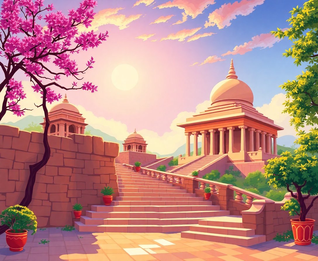Ultimately, step back and admire your finished creation. The ancient temple steps will seem to glow with warmth. Your completed artwork deserves a prominent display in your home.