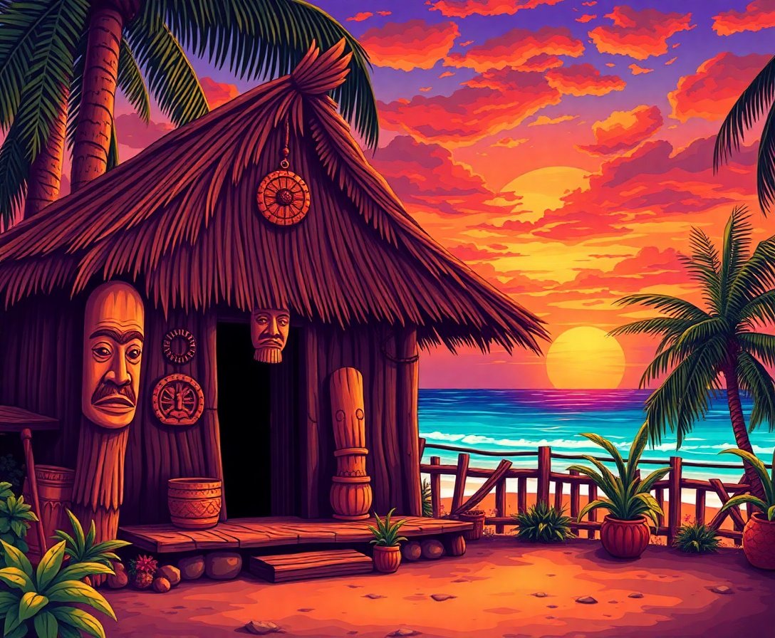 Transform your creative space with this captivating Vintage Sunrise Carver Hut Paint By Numbers kit. This stunning design showcases traditional Polynesian woodworking artistry bathed in golden sunrise hues. Moreover, each brushstroke brings you closer to mastering this cultural historical masterpiece.