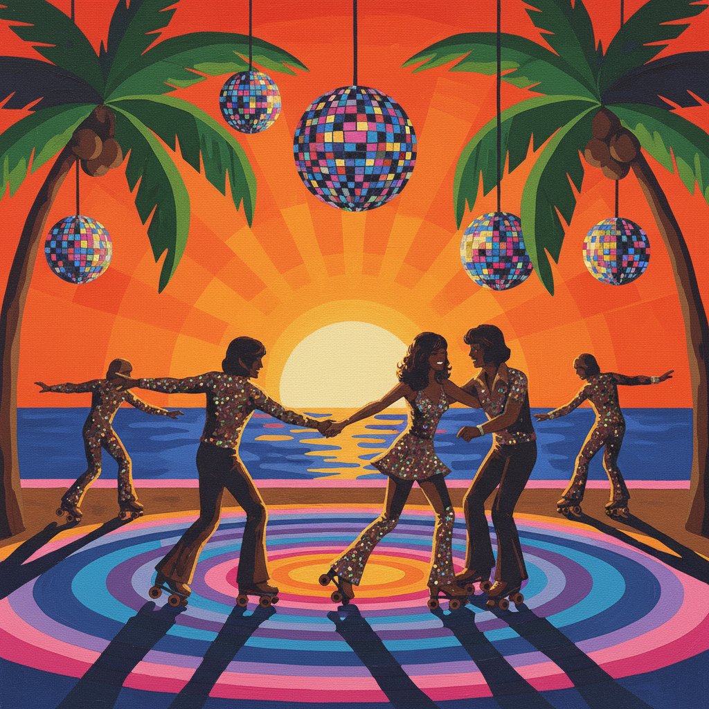 Ultimately, step back and admire your completed masterpiece. The vintage sunset hues blend perfectly with the disco atmosphere. Your finished painting captures the essence of this beloved era.