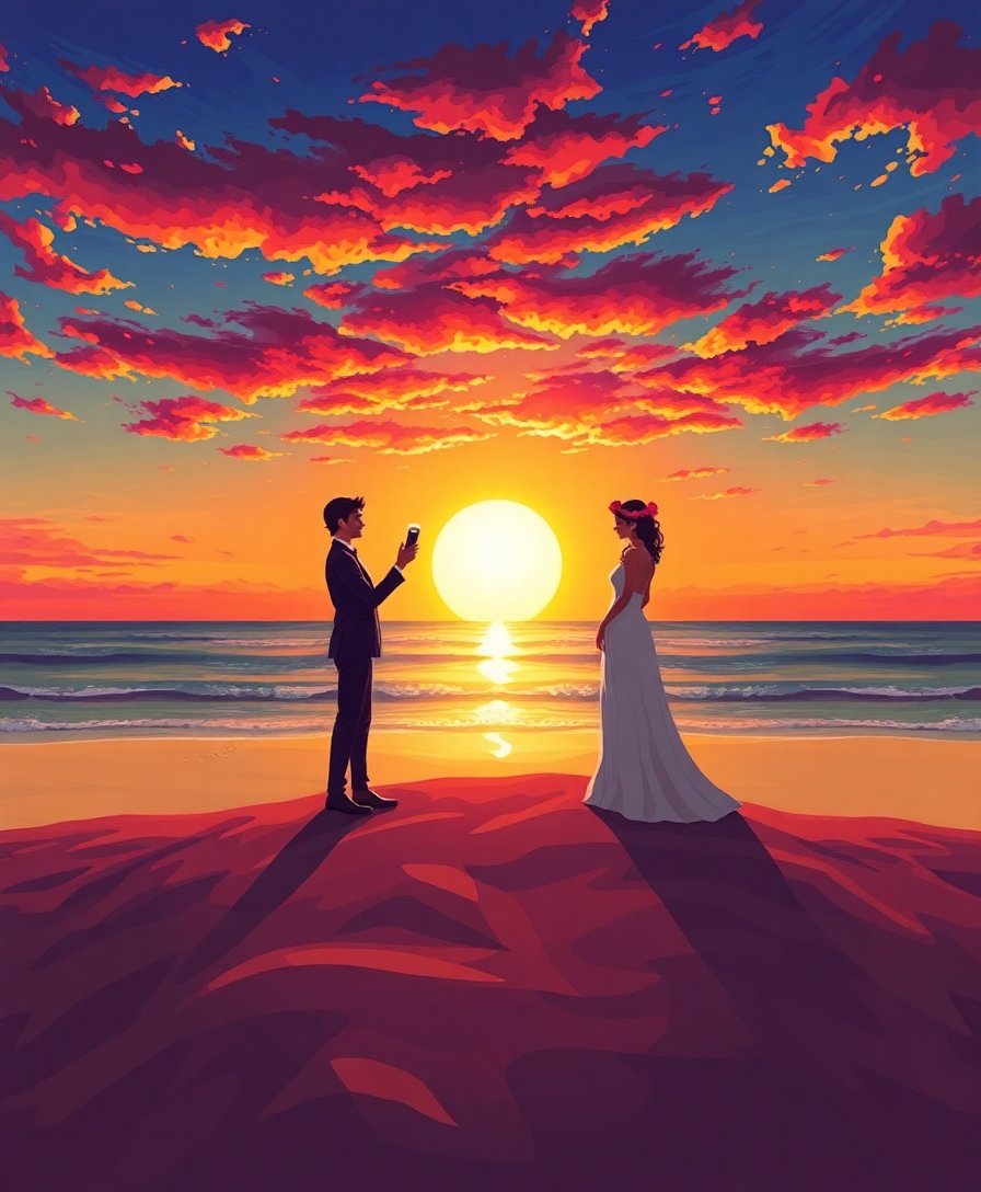 Perfect for anniversaries, Valentine’s Day, or any romantic occasion. The heart design and vintage sunset theme create meaningful artwork that celebrates love beautifully.