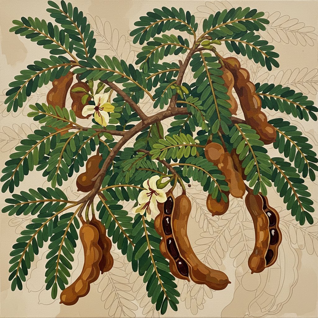 The sepia-toned illustration captures authentic vintage charm while showcasing the intricate details of tamarind botanical studies. This timeless design complements both traditional and modern decor styles beautifully.