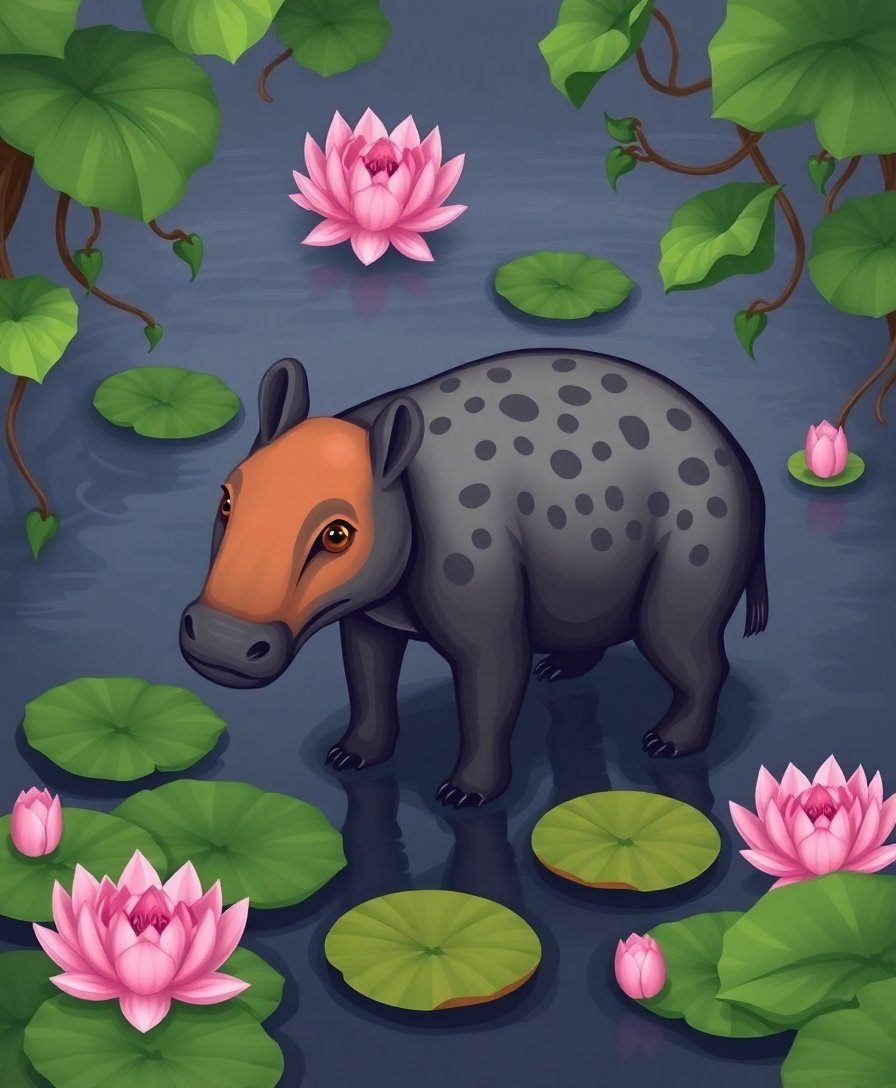 Transform your space with this enchanting Vintage Tapir Lotus Pond Paint By Numbers masterpiece. This nostalgic artwork captures a serene tapir amid blooming lotus flowers. The muted palette evokes timeless elegance while celebrating nature’s gentle beauty.
