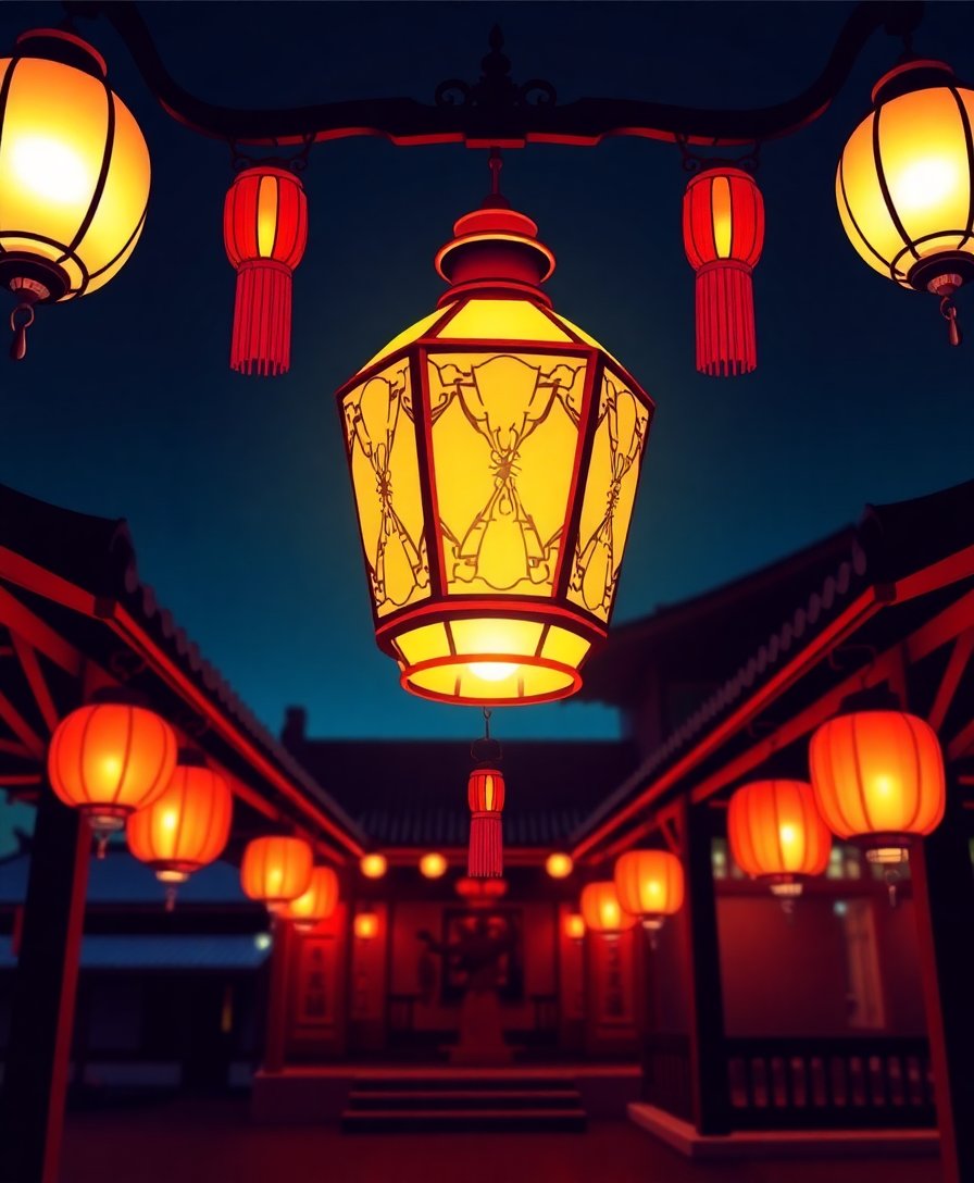Ultimately, step back and admire your completed temple scene. The warm lantern glow and intricate stone details create a stunning focal point. Your finished artwork captures the serene beauty of ancient temple architecture perfectly.