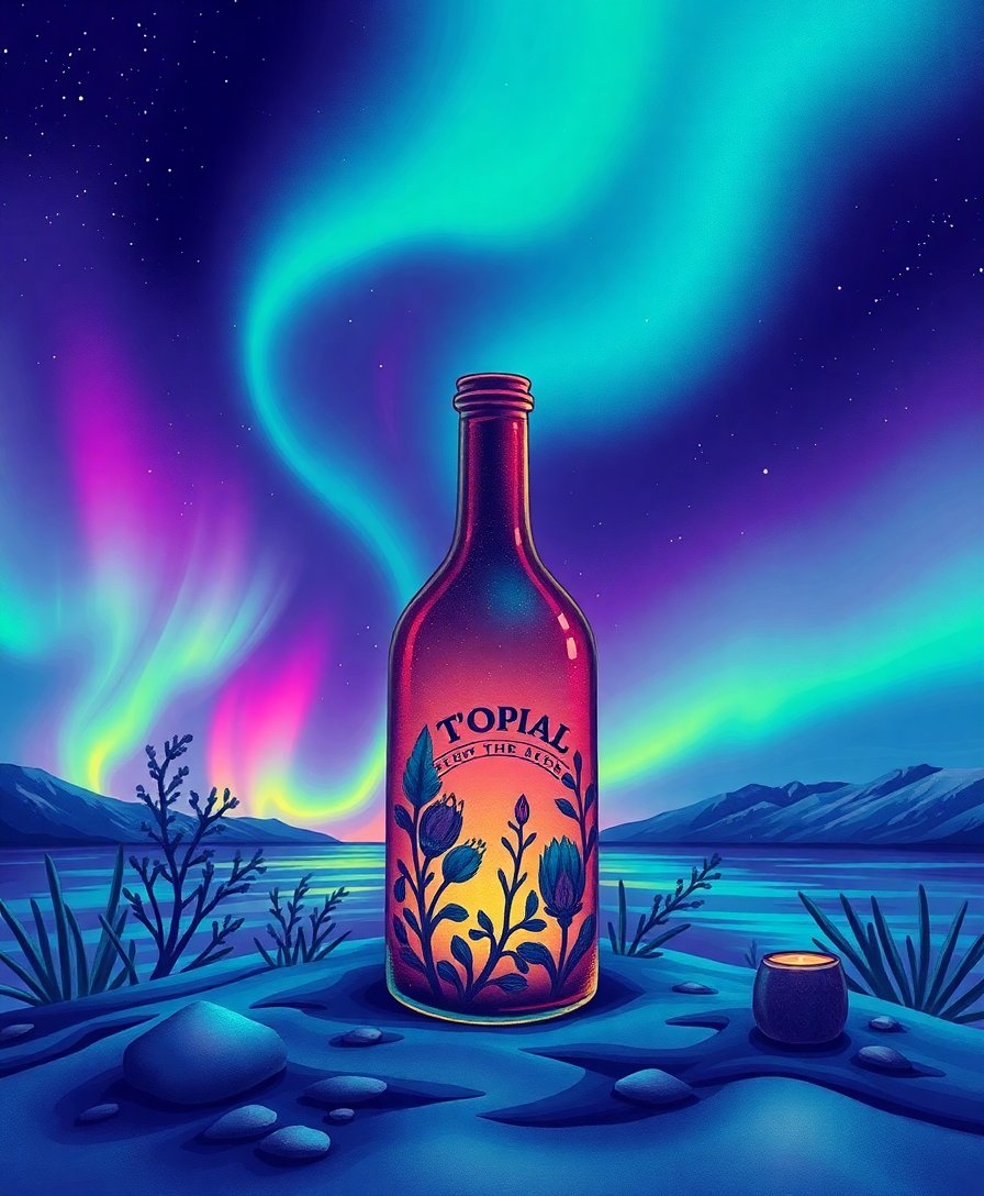 Transform your space with the mesmerizing Vintage Tropic Aurora Bottle Paint By Numbers. This stunning design captures ethereal aurora lights dancing within a vintage tropical bottle. Moreover, the neon green hues create a captivating nightscape that brings tranquil beauty to any room.