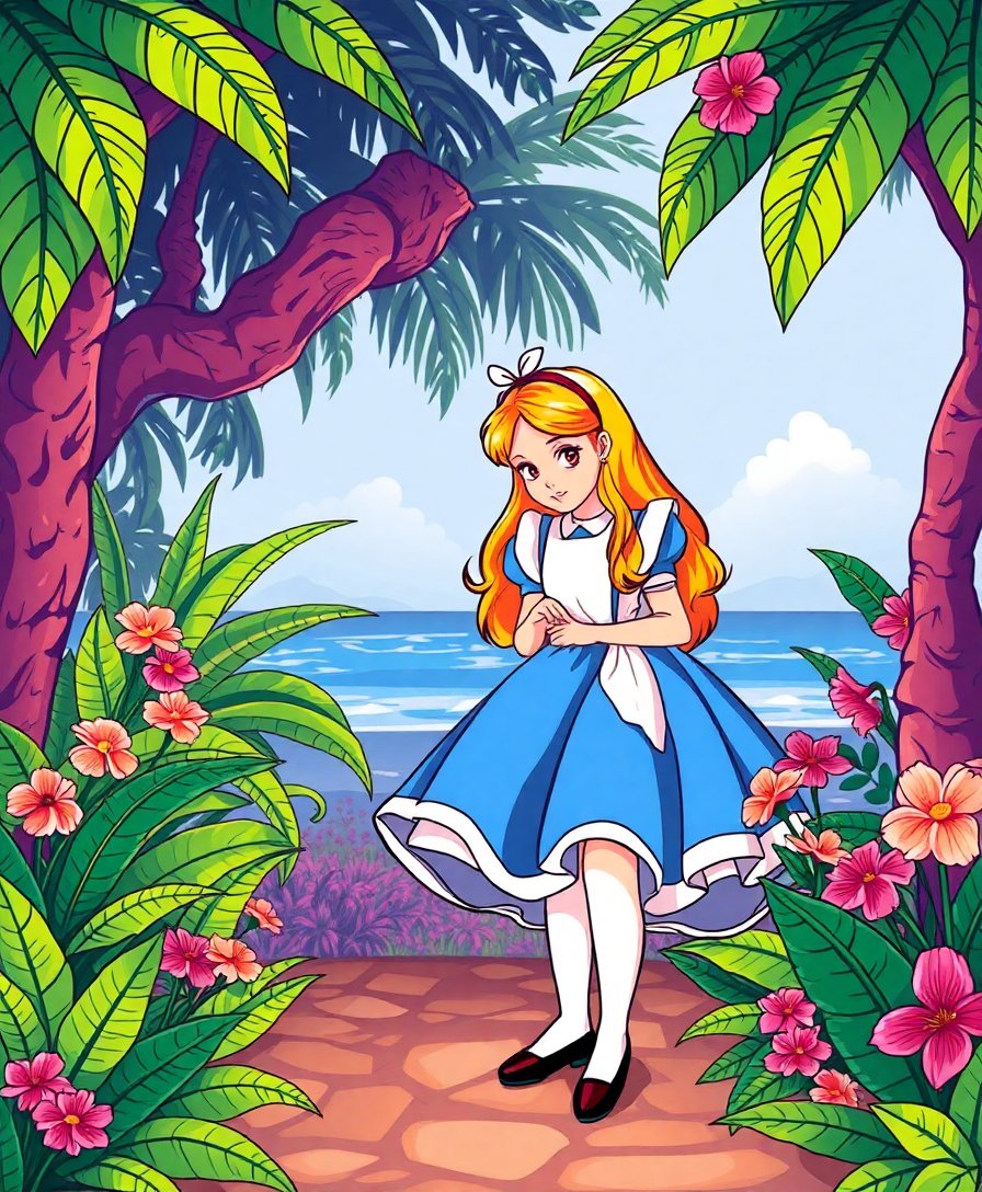 Transform your creative space with this enchanting Vintage Tropical Alice Encounter Paint By Numbers kit. This nostalgic masterpiece captures Alice’s whimsical journey through a lush tropical undergrowth. Moreover, each brushstroke brings beloved storybook magic to life.