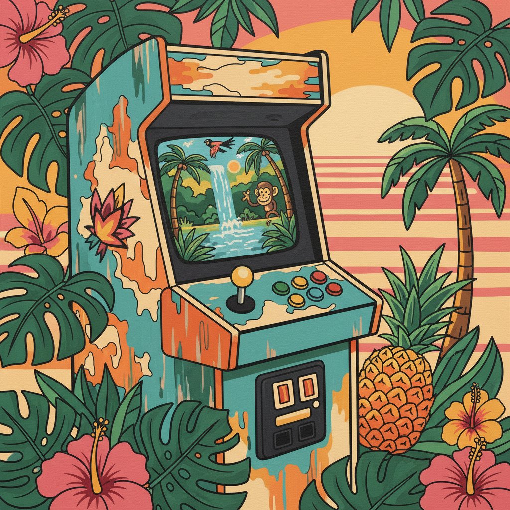 Transform your space with this stunning Vintage Tropical Arcade Cabinet Paint By Numbers kit. This unique design captures the essence of retro gaming culture blended with paradise vibes. Furthermore, you’ll create an authentic piece that celebrates both nostalgic arcade memories and tropical aesthetics.