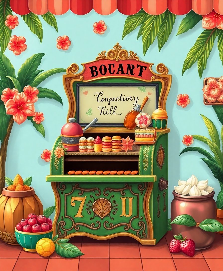 Transform your space with the enchanting Vintage Tropical Bakery Till Paint By Numbers kit. This delightful design captures the nostalgic charm of a vintage bakery cash register adorned with tropical hibiscus blooms. Perfect for creating a cozy indoor atmosphere that celebrates both vintage elegance and tropical warmth.