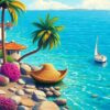 Ultimately, step back and admire your finished tropical scene. Add final touches and details as desired. Your completed artwork captures the timeless beauty of a vintage beach paradise.