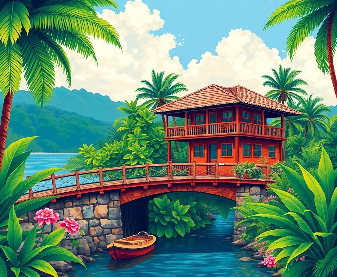 Therapeutic Benefits of Vintage Tropical Bridge View Paint By Numbers