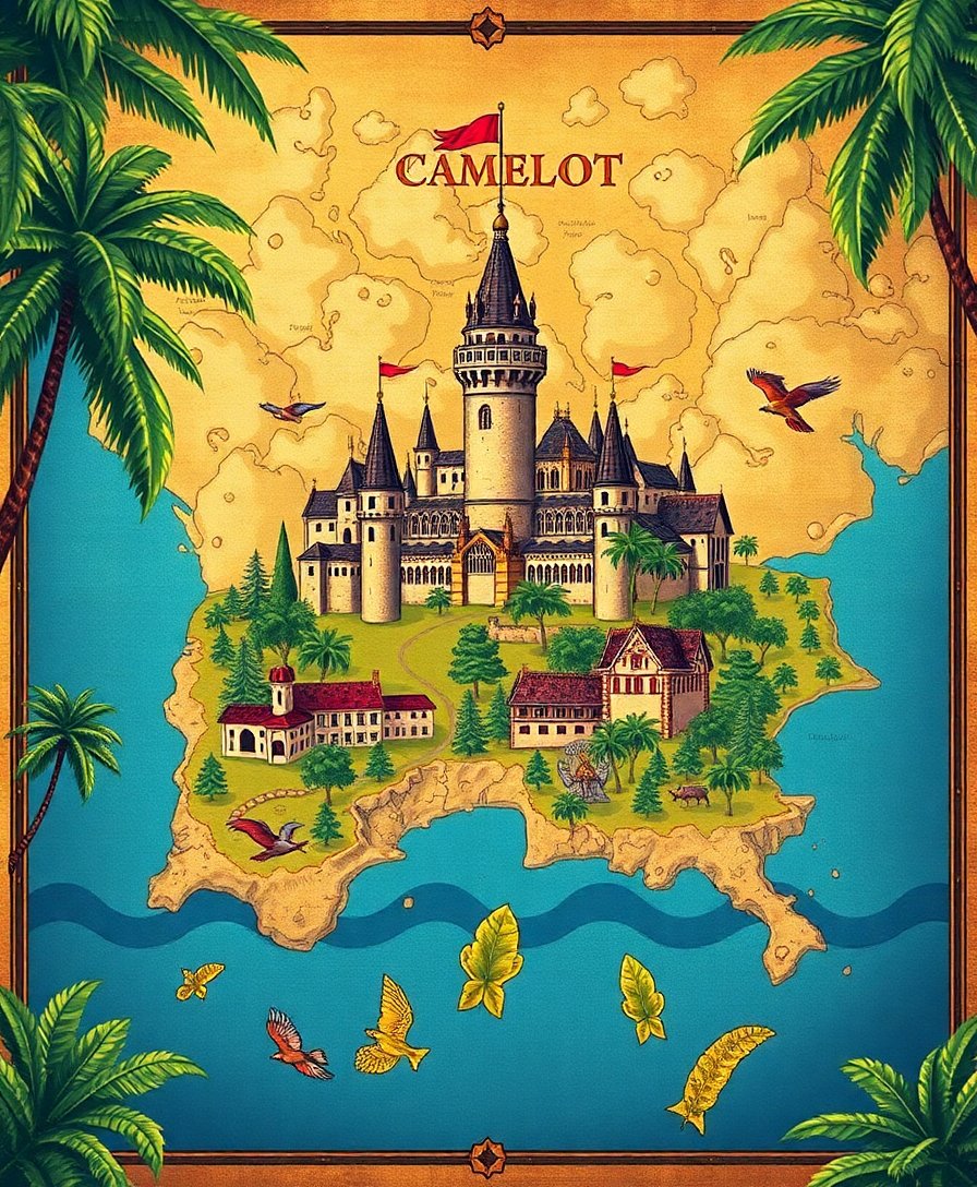 Transform your creative space with this enchanting Vintage Tropical Camelot Map Paint By Numbers. This extraordinary artistic journey combines medieval legend with tropical mystique. Each brushstroke reveals ancient cartographic details and Arthurian romance.