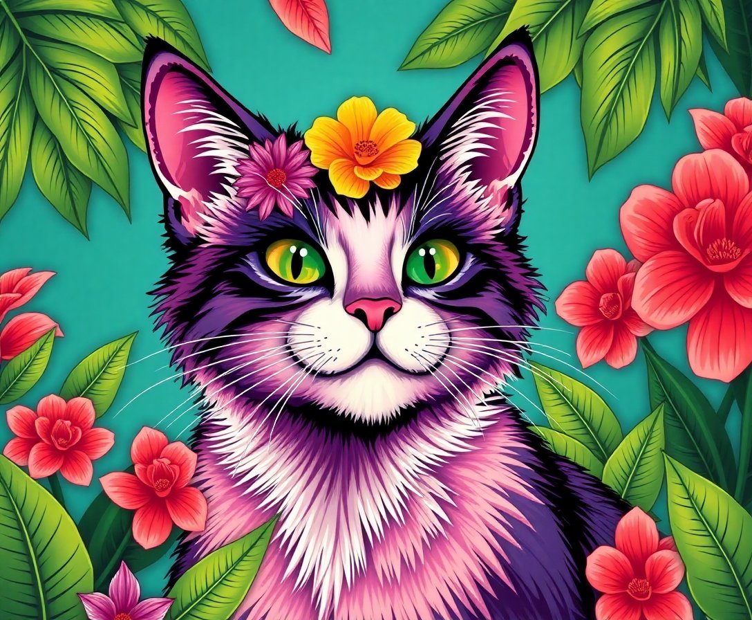 Ultimately, step back and admire your finished tropical feline masterpiece. The intricate details and vintage aesthetics come together beautifully. Moreover, your completed artwork becomes a conversation piece that showcases your artistic abilities and love for classic storybook characters.