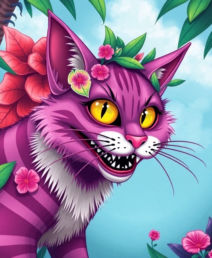 Transform your space with this enchanting Vintage Tropical Cheshire Cat Paint By Numbers design. This whimsical artwork combines classic Wonderland charm with vibrant botanical elements. The magenta and tropical hues create a stunning feline masterpiece that captures the mysterious allure of literature’s most famous cat.