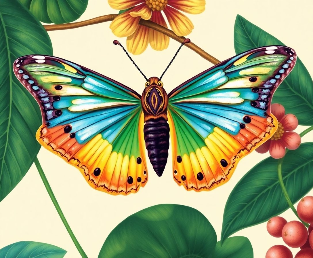 The sepia-toned palette and scientific accuracy create an elegant antique aesthetic perfect for sophisticated spaces. The intricate chrysalis details offer both educational value and artistic beauty.