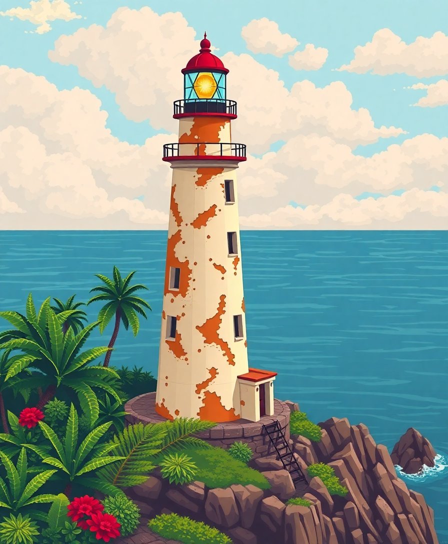 Transform your space with this stunning Vintage Tropical Cliff Lighthouse Paint By Numbers design. This enchanting coastal scene captures weathered charm against emerald tropical waters. Each numbered section guides you through creating this architectural masterpiece with ease.