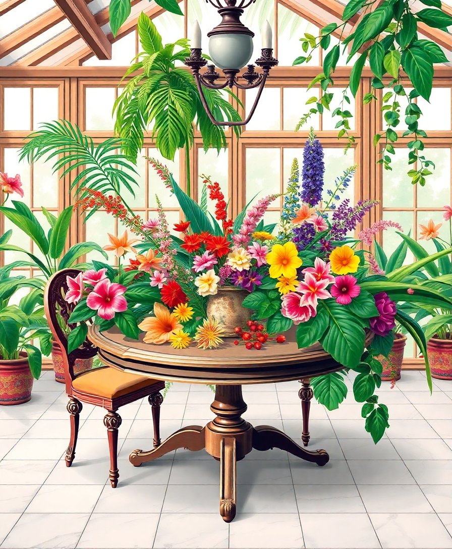 Vintage Tropical Conservatory Table Paint By Numbers