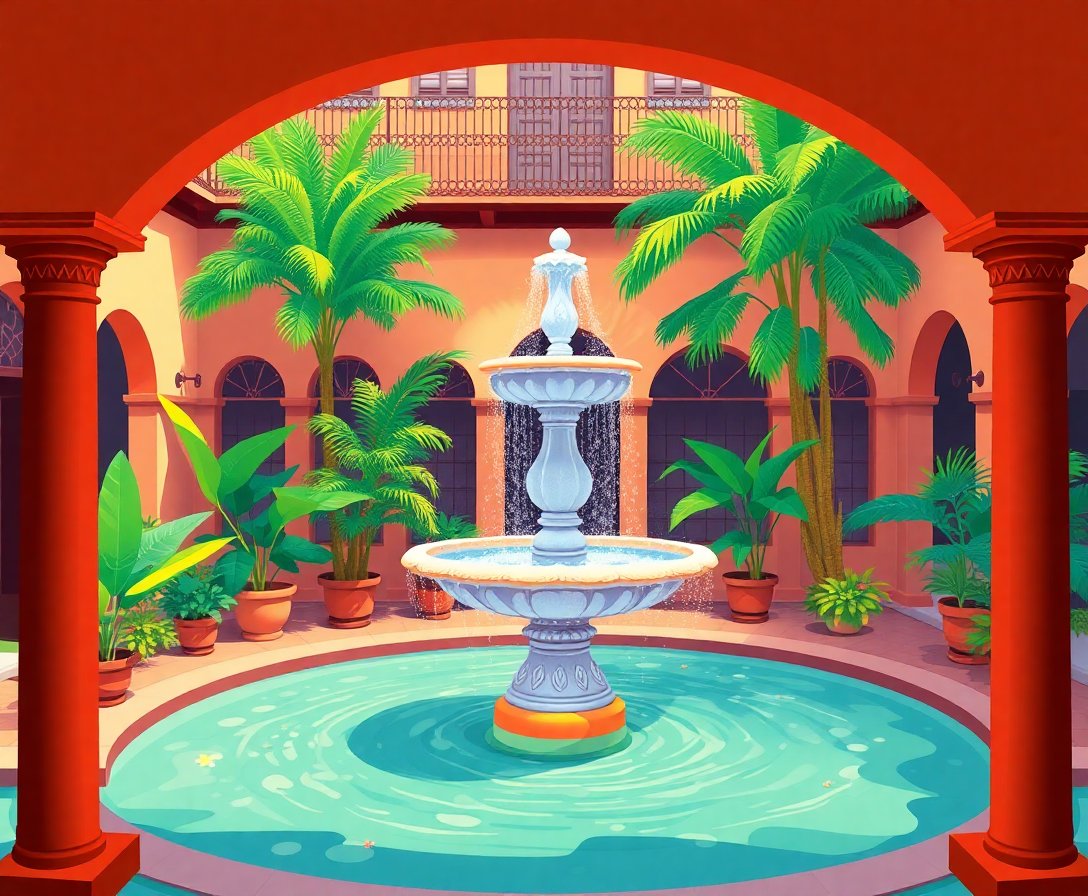 Embrace the tranquil beauty of this vintage tropical courtyard and discover your hidden artistic talents. Consequently, you’ll create a stunning piece that brings Mediterranean charm to your living space.