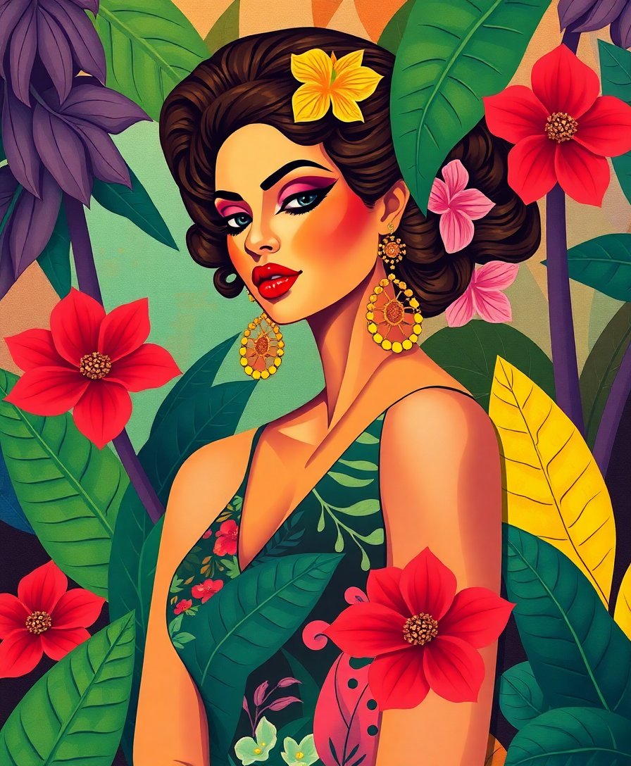 Vintage Tropical Cubist Lady Paint By Numbers