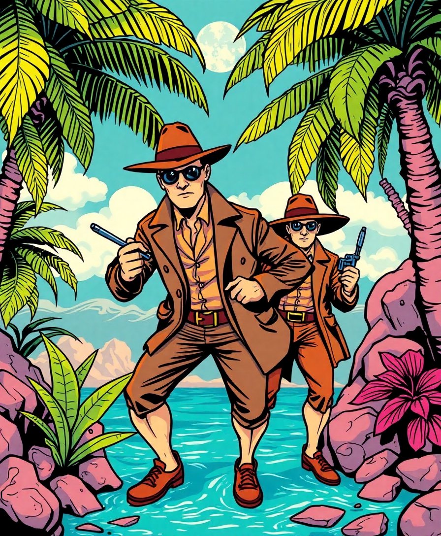 Step into a golden age adventure with this captivating Vintage Tropical Detective Quest Paint By Numbers kit. This remarkable artwork transports you to a mysterious jungle setting where vintage comic heroes come alive. Meanwhile, the realistic detail and entertainment art style create an immersive painting experience.