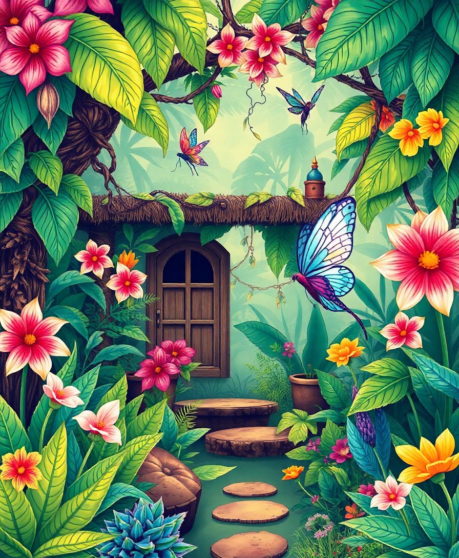 Transform your creative space into an enchanted conservatory where fairies dwell among tropical foliage. Therefore, begin your artistic journey today and discover the magic within each numbered section.