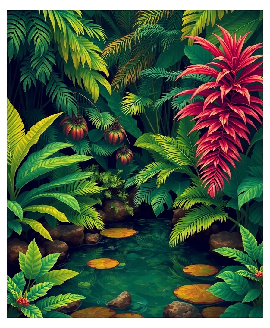 Subsequently, begin with lighter shades to establish your tropical foundation. Furthermore, work systematically from one section to another. Meanwhile, blend colors gently where ferns meet their water reflections. Consequently, watch your vintage oasis emerge beautifully.
