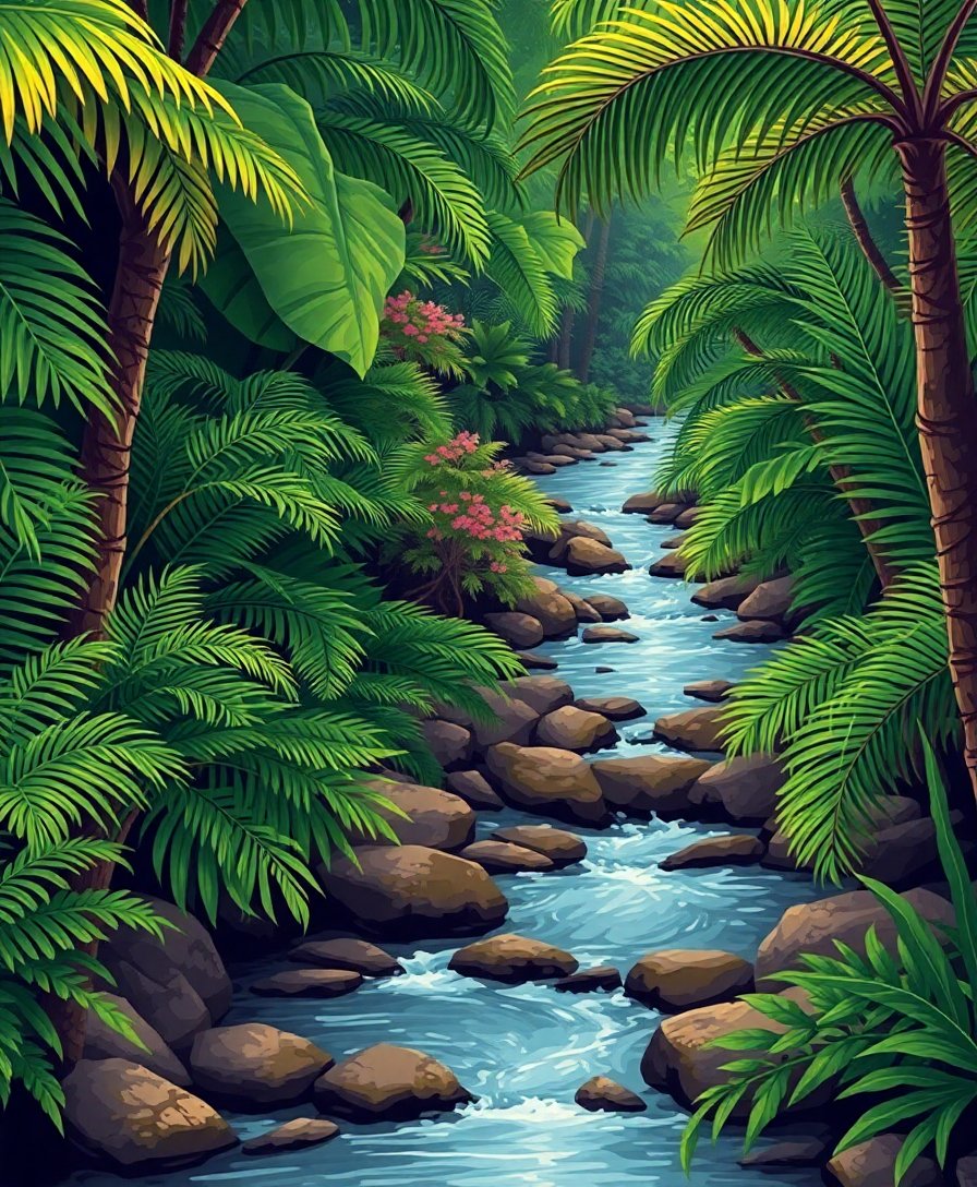 Transform your creative space with this enchanting Vintage Tropical Fern Stream Paint By Numbers kit. This botanical masterpiece captures the serene beauty of lush tropical vegetation alongside a gentle stream. Each brushstroke brings you closer to recreating nature’s tranquil harmony.
