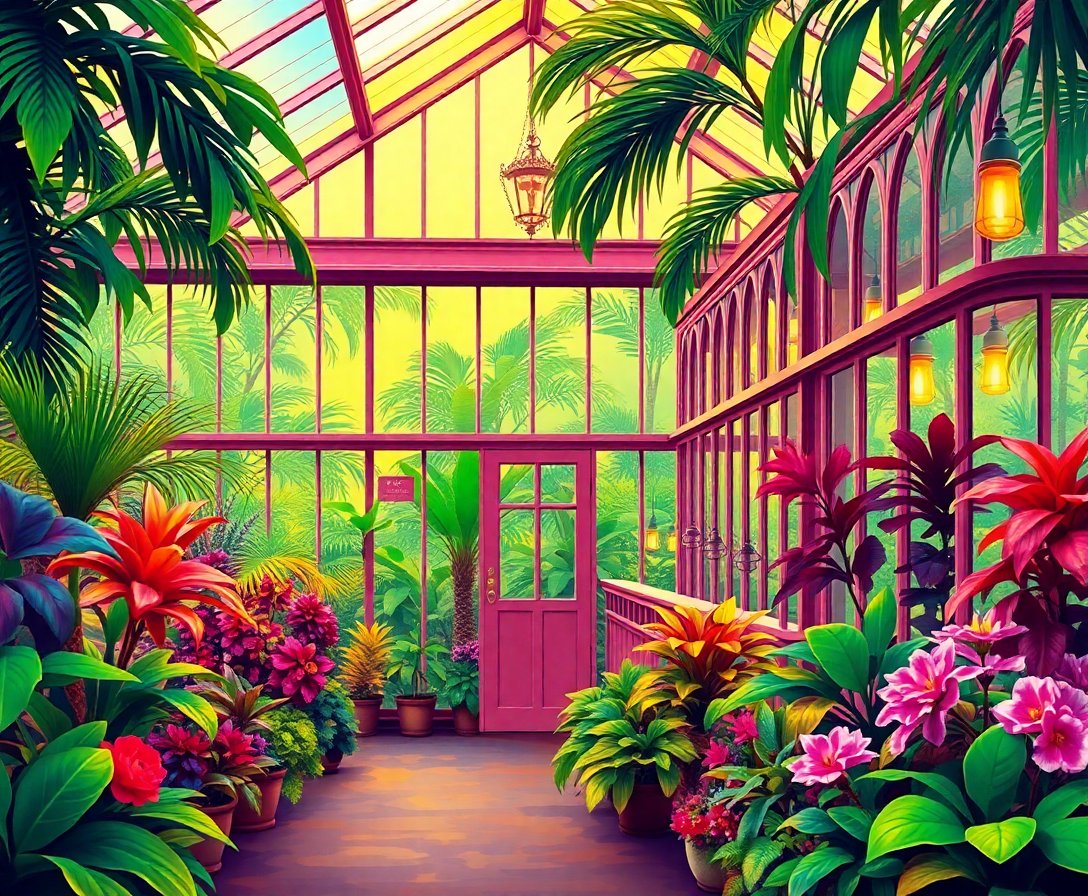 Ultimately, step back and admire your completed tropical conservatory scene. Moreover, the warm gaslight effects and atmospheric perspective create stunning visual depth. Consequently, your finished masterpiece becomes a captivating focal point for any room.