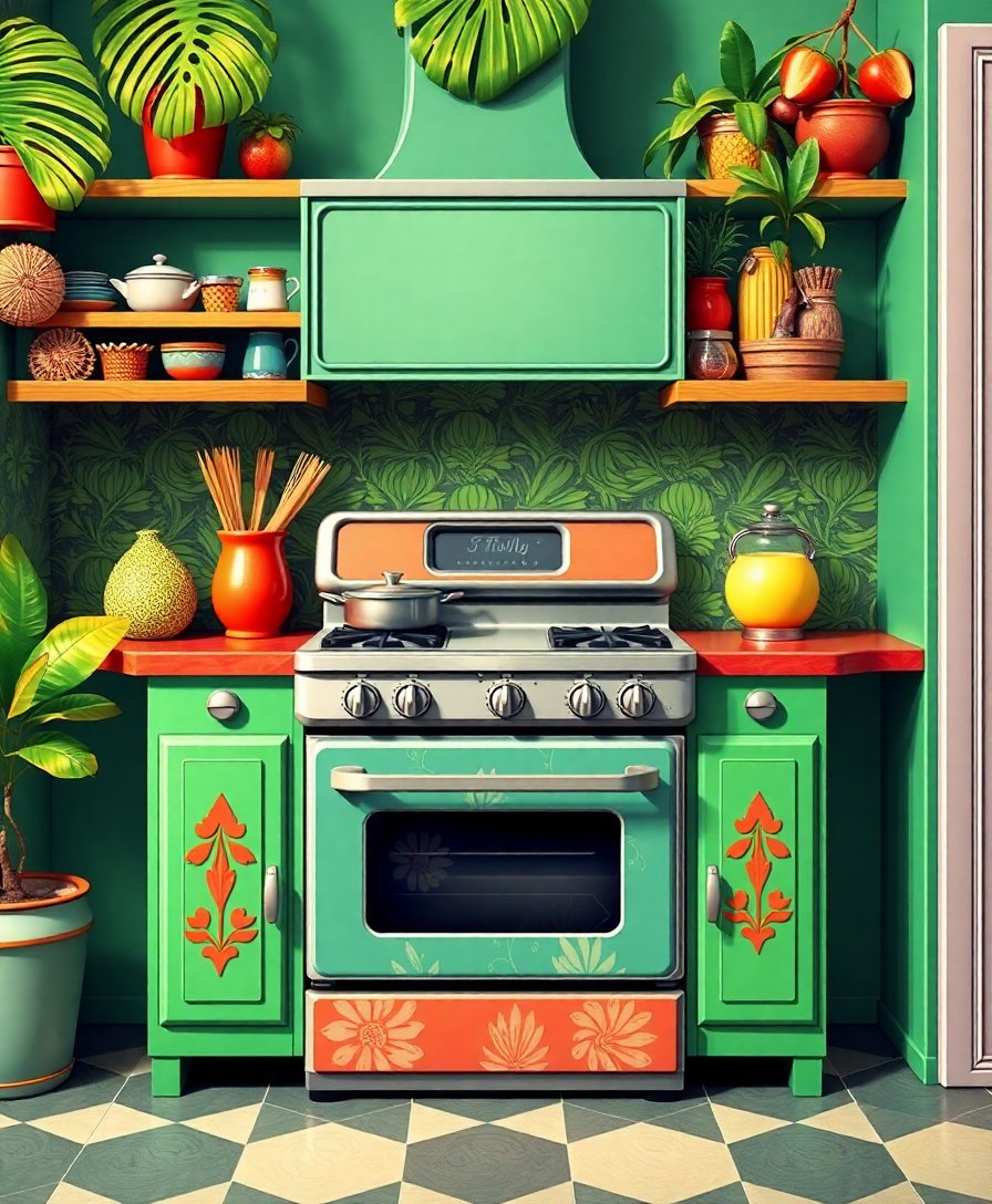 Vintage Tropical Kitchen Stove Paint By Numbers