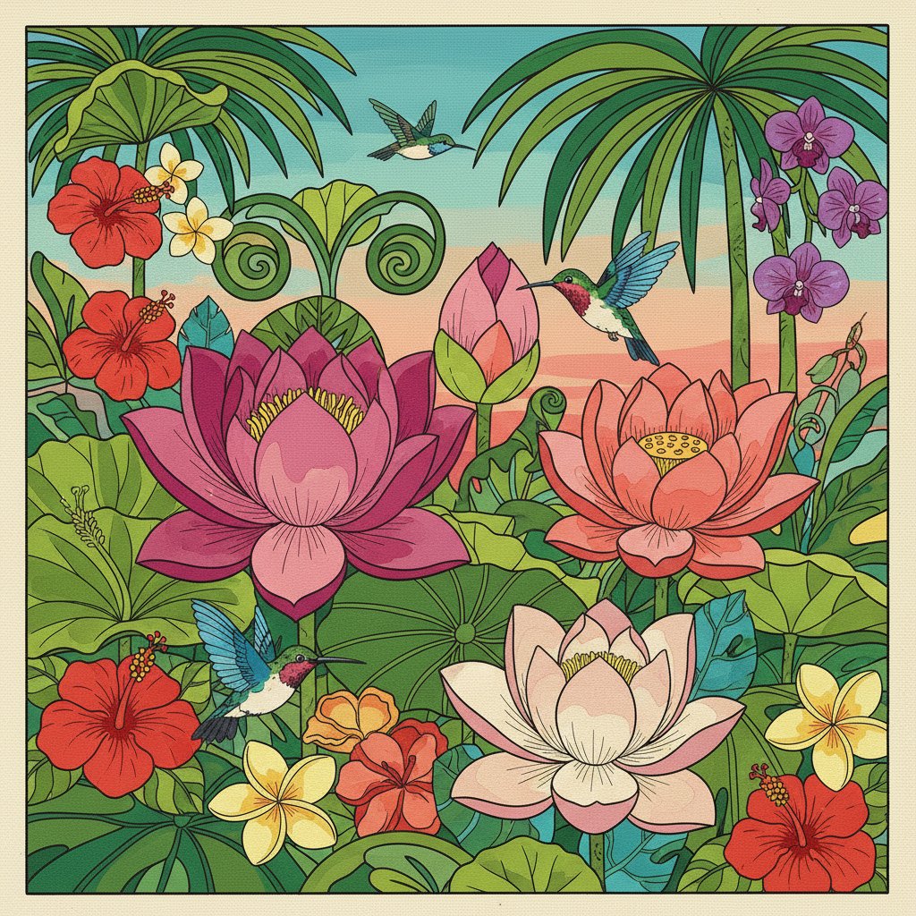 Therapeutic Benefits of Vintage Tropical Lotus Study Paint By Numbers