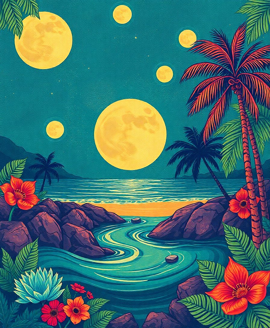 Embrace the tranquil beauty of moonlit tropical waters through this exceptional painting experience. Additionally, each session brings you closer to creating your own oceanic masterpiece. Furthermore, this tidal equinox pattern celebrates the eternal dance between moon and tide.
