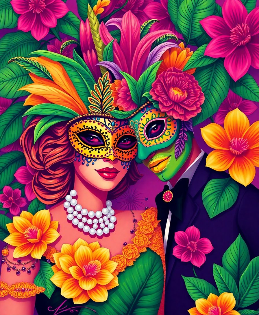 Perfect for artists seeking sophisticated holiday themes. This kit combines tropical paradise with mysterious masquerade elegance. Create memorable artwork that celebrates both vintage aesthetics and masquerade festivities in stunning detail.