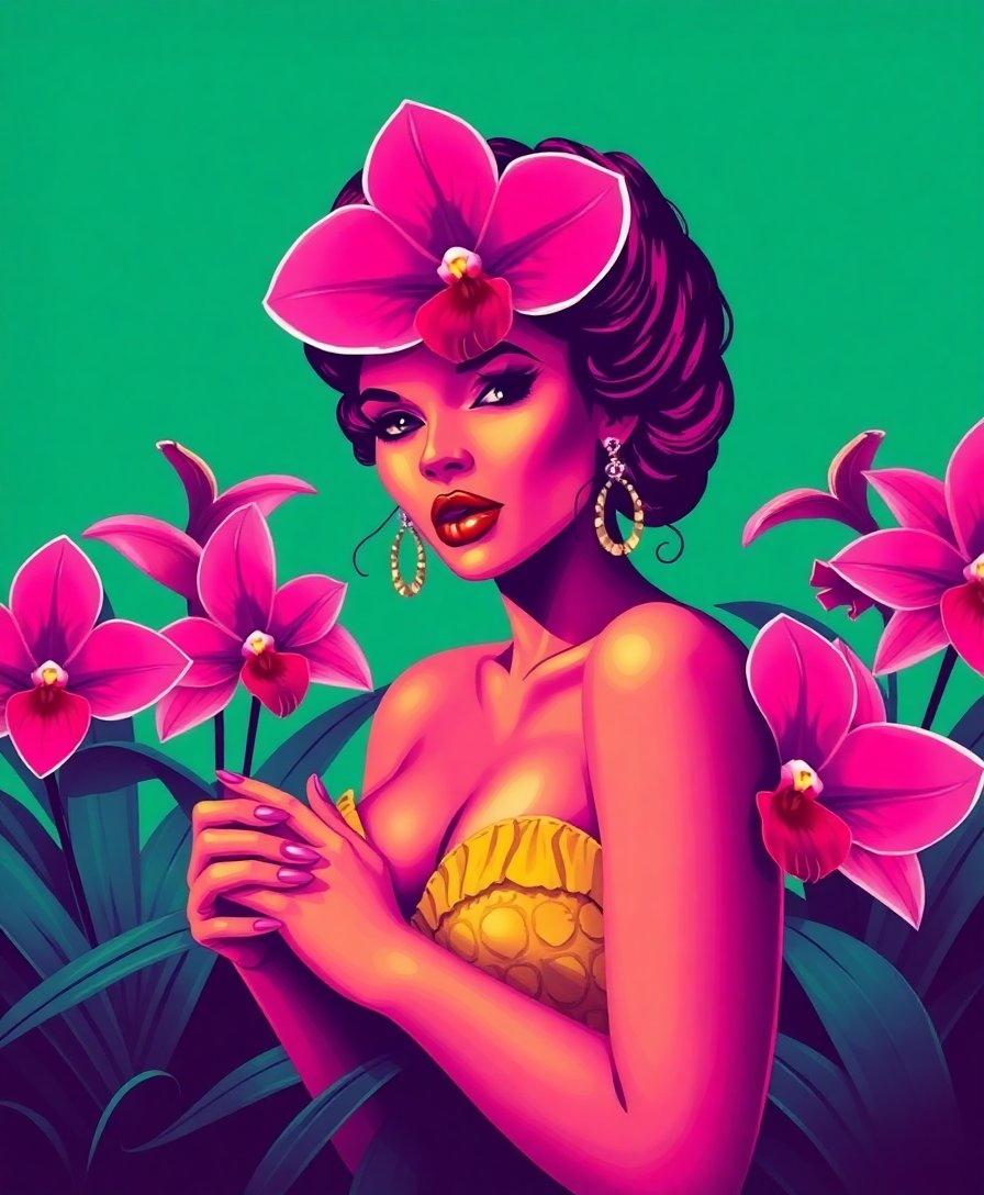 Vintage Tropical Orchid Noir Paint By Numbers