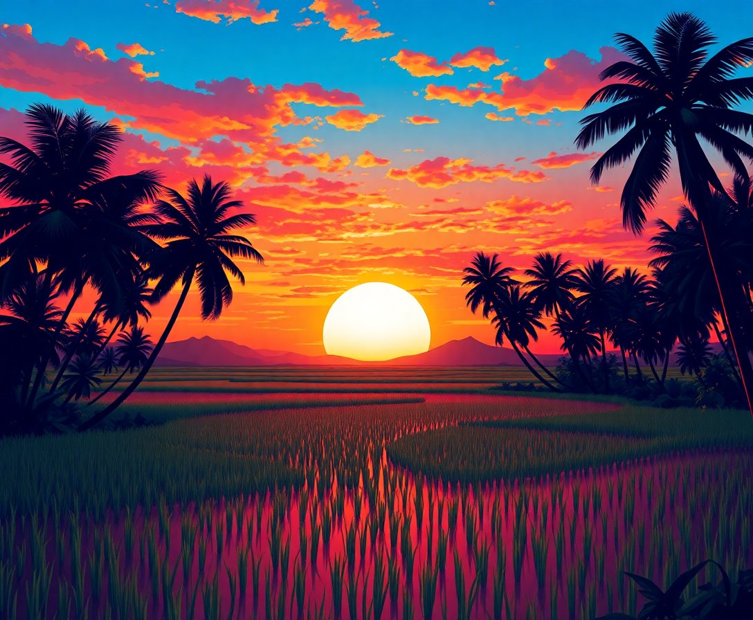 Transform your space with the captivating beauty of a landscape masterpiece. This Vintage Tropical Paddy Sunset Paint By Numbers captures the serene essence of golden hour over lush rice fields, bringing warmth and tranquility to any room.