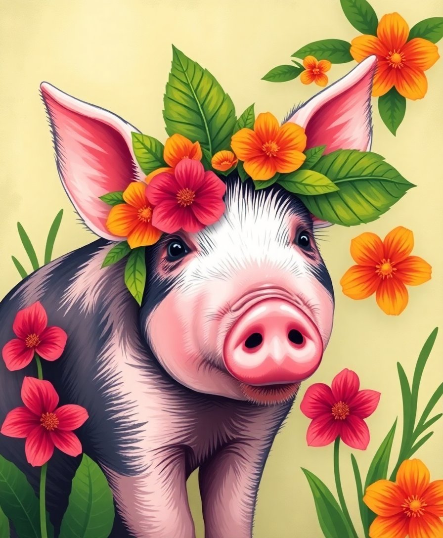 Finish your Vintage Tropical Piglet Portrait Paint By Numbers and celebrate a handmade accent that feels nostalgic yet fresh. This engaging Vintage Tropical Piglet Portrait Paint By Numbers Kit turns simple evenings into calm, creative sessions and leaves you with a charming piece ready to display.