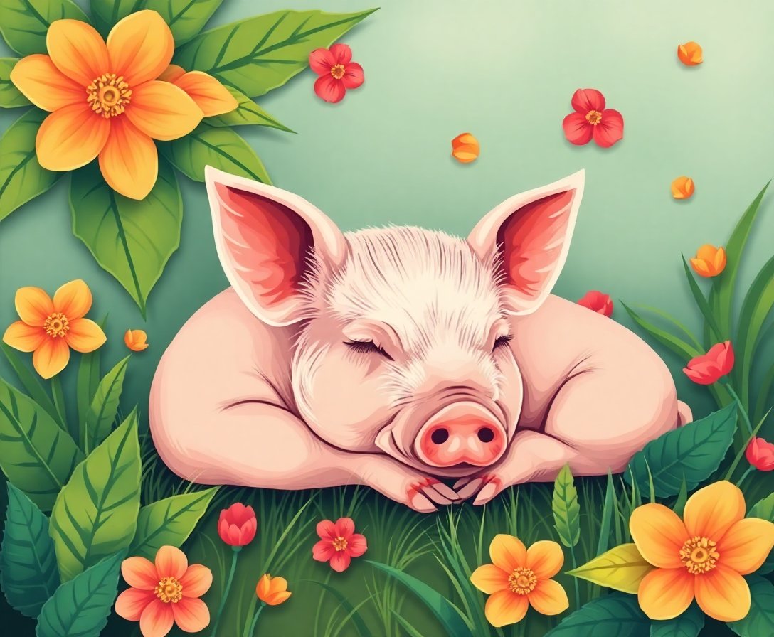 Therapeutic Joys of Vintage Tropical Piglet Slumber Paint By Numbers